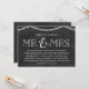 This pretty, rustic chic wedding rehearsal dinner invite features "Mr. & Mrs." written in vintage typography, a glowing string of heart-shaped lights, and a chalkboard background.