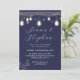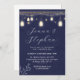 Mason Jar + fairy lights wedding invitations with an elegant blue rustic feel!