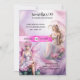 Two beautiul caucasian fairy princesses with beautiful pink fairy wings are wearing floral headbands and have their fairy wings open wide. They both have long blonde hair and are framed by a whimsical soft pink and white watercolor background. Cute editable black text templates appear around them for your custom wording. The back is the same colour as the pink band on the front and has a white template for additional wording or information that you may want to convey to your guests (directions, accommodation etc). Should it not be required, simply delete the wording to leave it blank. This watercolor 3D graphic is ideal for a whimsical fairytale; adult caucasian fairy princess; girly girls fairies enchanted magic themed birthday.