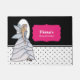 Designed based on my fashion illustration of a beautiful blonde hair lady wearing stunning classic elegant white grey flower petal dress. The design has black and White Polka Dots on the background - a chic and modern style doormat, perfect for your home or business. Customisable with your own text for a personalised design.