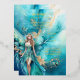 A vibrant real foil print (choose between gold, rose gold or silver) rests against a vibrant watercolor teal and gold floral flower background. An exquisite fairy with her wings wide open is standing at the bottom left corner and is looking up at the editable text templates. She appears to shimmer and shine and has long blonde hair cascading over her shoulder. Two small butterflies are flitting about giving the overall design a mythical feel. The back has the same design plus a single template for additional wording, if required. If not, simply clear the template to leave the graphic only. This is ideal for a "fairy theme" birthday, fairytale bridal shower or an enchanted folk ladies birthday party.