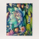Personalised fairy puzzle. Cute little fairy sleeping on a lotus flower on a lily pad with flowers and mushroom background. Cute fairytale style illustration. Sweet dreams.