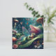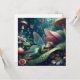 Blank card with a pretty ai watercolor illustration of a little fairy with sings sleeping atop a mushroom surrounded by beautiful blooming pink flowers. Ethereal fairytale art. Back side of card is blank so you can write whatever note you want.