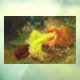 Window Cling featuring Arthur Wardle’s painting A Fairy Tale (1895). A young woman with long red hair wears a yellow dress and sleeps in a green forest next to resting deer, a rabbit, and peacock. A beautiful gift for fairy tale lovers and English art enthusiasts!
