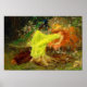 Poster featuring Arthur Wardle’s painting A Fairy Tale (1895). A young woman with long red hair wears a yellow dress and sleeps in a green forest next to resting deer, a rabbit, and peacock. A beautiful gift for fairy tale lovers and English art enthusiasts!
