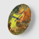 Clock featuring Arthur Wardle’s painting A Fairy Tale (1895). A young woman with long red hair wears a yellow dress and sleeps in a green forest next to resting deer, a rabbit, and peacock. A beautiful gift for fairy tale lovers and English art enthusiasts!