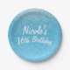 Fairy Tale Blue Glitter Sweet 16 Birthday Party Paper Plate