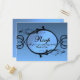 The perfect matching postcard for a blue affair. These postcards save the need for an extra envelope. Change the date on front. Change the entrees of choice and add you return address. Don't forget to add a postage stamp to make it easy for your guests to return these.