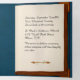 Fairy tale style wedding invitation done in a book looking tri fold. The outside is done in a blue leather look, with graphics of gold decorations and scroll. The inside is done in vintage graphics of a fairy tale book look. The inside middle section has a custom photo slot ready for your picture. Personalise all the text fields for your special wedding announcement.