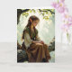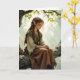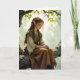 A sweet whimsical thinking of you card for a friend or family member wishing them a magical day, featuring an elven fairy in vintage dress sitting on a tree branch.