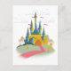 Fairytail Castle on a green hill, cute cartoon in a beautiful old vintage style.