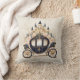 This elegant design features a feminine fairytale carriage in navy blue with a princess castle behind adorned with blush pink florals.