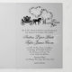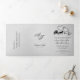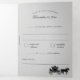 Enchanting fairy tale tri fold wedding invitation with an antique horse drawn carriage and hearts with monogram in a silver gray.