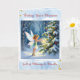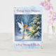 A pretty little fairy decorating a Christmas tree with ornaments and Christmas lights on a cold winter's night. Inside is a sweet holiday poem with a cottage core Christmas vibe. You can also add your own holiday message and names in the personalize area.