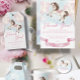 Horse-themed Thank you card featuring illustration of a lovely baby pony and Watercolor fairytale gold stars with pastel colours balloons and pink ribbon for ending celebration!