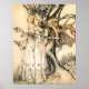 Fairytale Princess and Tree Elf poster. Arthur Rackham Illustration. British artist Arthur Rackham created some of the most beautiful fantasy art of the early twentieth century. This illustration shows a beautiful young woman being wooed by a lonely tree elf in an enchanted forest. The girl wears a white fairy tale dress. A pretty gift for fans of Arthur Rackham, Fantasy Art, and Fantasy Illustrations.
