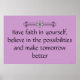 Inspirational quote by Robert Gebbie. These affirmations are part of our Motivational and Inspirational writings. Text reads: Have faith in yourself, believe in the possibilities and make tomorrow better.