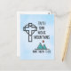 A postcard with an inspirational Christian quote which says: Faith Can Move Mountains. Matthew 17:20. With an image of mountains and a cross with a heart.