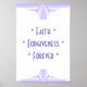 A classic art deco style pattern created in lilac and purples, with an encouraging Christian quote