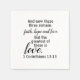 white napkin with the bible verse "And now these three remain: faith, hope and love. But the greatest of these is love."1 Corinthians 13:13