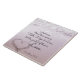 Beautiful inspirational quote ceramic tile depicts an ocean view with a heart carved in the sand and features Bible Verse 1 Corinthians 13:13, And now these three remain Faith, Hope and Love, but the greatest of these is love.~