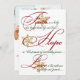 This customisable flat invitation style red, green, white, and gold FAUX glitter (PRINTED) snowflakes Christmas card has ornate red and green words on it that say "Faith in a baby who brings love, life, and light, hope in His promise of everlasting peace, love in the embrace of family and friends." Add your own digital photo and messages using the template boxes on the back.