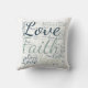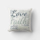 Faith Hope and Love. This word cloud throw pillow contains the words Faith Hope Love in a beautiful script font.