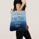 Remind yourself and others to walk by faith with this encouraging bag. It features an ocean-inspired background with text from 2 Corinthians 5:7. It reads "For we walk by faith not by sight."
