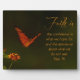 A Heaven to Earth design featuring a butterfly in flight combined with an inspirational scripture verse from Hebrews to motivate and encourage you in this one-of-a-kind "Faith is...Inspirational" Scripture plaque. This attractive design features a photo taken by Blair Wainman (aka. Heaven to Earth designs) to create an environment of hope, peace and comfort. This design makes a great addition to home, office, camp retreat centre, or cabin in the country. Also makes a great gift for family and friends alike. COMPLETE YOUR SHOPPING WITH MATCHING ACCESSORIES OR GIFT IDEAS FROM THE SCRIPTURE VERSE COLLECTION AVAILABLE FOR PURCHASE THROUGH THIS STORE.