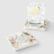 The coasters are gorgeous, a quality feel and heavy weight. They look like a precious archeological find. A rustic stone juxtaposed with a modern floral black and white print. I like the way the print goes slightly imperfect on the cut stone edges giving them a kind-of natural beauty.
