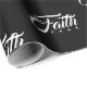 Visual wordplay text design with the first line in a strong beautiful font printed in bold above the second line of small wide-spaced letters. Keep the inspirational saying 'Faith Over Fear' for a gift of encouragement, or use the text template to create a new inspiring quote. Edit to change the white text and black background to any colour you wish. ♡ Idyllfire