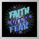 This bold and vibrant design radiates with a message of courage and belief, featuring "Faith Over Fear" in striking shades of blue and purple. Bursting with energy, the backdrop of starry accents and radiant beams makes it feel like an explosion of hope against the unknown. A perfect reminder to stand tall in the face of challenges, this design adds an inspiring touch wherever it goes.