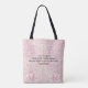 The front of the tote features a beautiful pom-pom Zinnia flower, processed in an artsy style; the back of the tote has a complementary colour toned floral pattern with Scripture from Psalm 104:31 so either side can be shown.