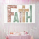 A bold, distressed rendering of the word FAITH becomes a canvas for sacred verses, each letter infused with biblical truth. From Romans to Matthew, the design invites reflection on the foundations of belief, grace, and divine promise.