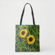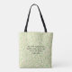 The front of the tote features beautiful yellow wildflowers called Coreopsis; the back of the tote has a light floral leaf pattern with a bible verse from Psalm 145:19 so either side can be shown.