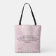 The front of the tote features a beautiful yellow and purple wildflowers; the back of the tote has a complementary colour toned floral pattern with a bible verse from Psalm 90:17 so either side can be shown.