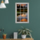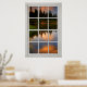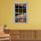 Enhance the decor of any room with this picturesque poster. The artwork creates the illusion of having a window which is encased by a white wooden frame with 12 panes of glass. The lake reflection view makes you feel as though you are looking out at a picturesque summery scene.
