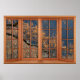 This faux window poster features a realistic view a Autumn tree branches and blue skies. The 4 panelled wooden bay window is designed with light wood and looks like a real window on your wall. Created at high definition (300 dpi) this piece can be enlarged and will still print out nicely.