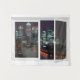 Night view London cityscape, faux window scene, for a windowless office wall. Fun, realistic optical illusion scenic wall hanging for an office or study wall.