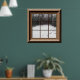 Faux window overlooking falling snow and snow covered trees. For more fake window posters visit the rest of this shop.