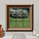 Faux window overlooking green lawn white flowering bushes. For more faux window decor visit the rest of this shop.