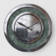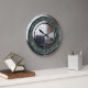 Reminiscent of vintage hubcaps. Digital image of green marble in the background with a chrome rim. A chrome dome in the centre with a falcon symbol embossed in the centre. For a clean modern look there are no numbers to distract from the design. This is a digital image and is not actual chrome and marble.