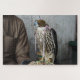 Photo jigsaw puzzle of a blindfolded falcon used for falconry on the handshoe of a falconer in Doha, the capital of the Gulf country Qatar.