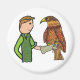 Falconry design shows a keen falconer holding his bird of prey which observes him closely.