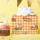 Fall pie lovers will enjoy this whimsical pattern of apple, pumpkin and pecan pies! They're hand drawn in a cartoon style on an orange pumpkin colour gingham pattern that's perfect for autumn and Thanksgiving! You can change the size of the pattern and select a different solid colour to coordinate with the orange gingham. I have used a cream colour, but it looks nice with other warm colours. Add any text to personalise this design for a fun and unique gift wrapping paper!