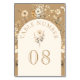 Elegant wedding table numbers featuring beautiful rustic wildflowers.