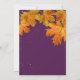 A rich eggplant purple background version that has a very formal, colourful pretty style. This brilliantly coloured fall leaf wedding design was created from artwork that was hand painted by Audrey Jeanne Roberts and then graphically designed into this simple, modern, clean lined wedding invitation set with matching products for showers, receptions and formal events. 5 autumn leaves that are turning colours from bright red to orange, gold and avocado green tumble from the trees and are layered over an art deco style simple gold leaf border, worn aged distressed vintage style parchment paper that is tea stained and confetti like faux gold glitter, sparkle splatters for a finishing touch. On the reverse side are the leaves and twinkling, glittering polka dots.