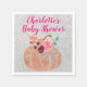Cute and chic fall autumn baby shower napkin with a large orange floral pumpkin, silver glitter sparkles background, and elegant hot pink writing. You can easily add your name and custom text and change the colour and font using the customise option!