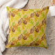 This throw pillow is shown in a autumn fall leaves acorn print with a light golden background colour.