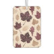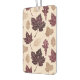Sweet autumn themed design featuring falling leaves in shades of brown and purple against a pale tan background.